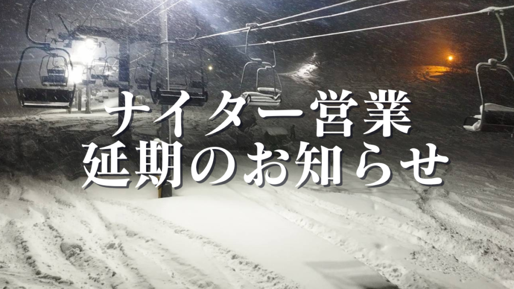 ナイター営業 ※ 延期 皆様こんばんは。 奥利根スノーパークをご愛用して頂き、 ありがとうございます。 ナイター営業についてのお知らせです。 12月26日(金)より ナイター営業開始予定でしたが、 今シーズン……