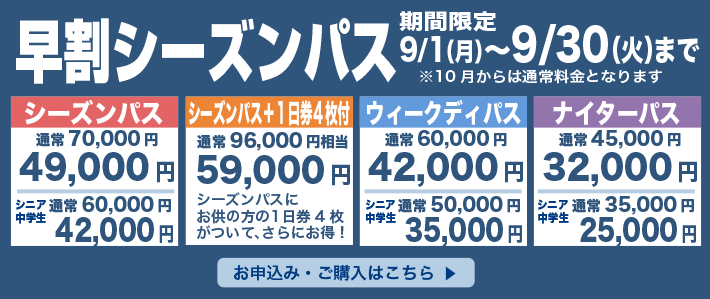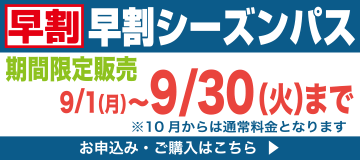 早割シーズンパスは、9月限定!でご用意しておりますので、