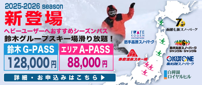 | 鈴木Gパス(全国6スキー場) | 128,000円 |