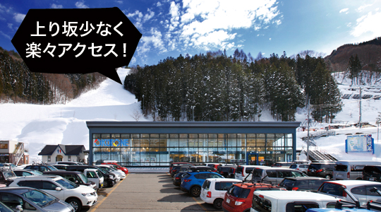 関越自動車道「水上I.C」から10kmという近さに加え、スキー場入口まで融雪道路そして、上り坂も少ないためお車でも安心してご来場いただけます。